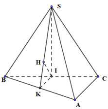 Gọi \(I\), K lần lượt là trung điểm của BC. Kẻ \(IH \bot SK\) tại H.