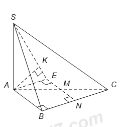 Do đó \(d\left( AB;SM \right)=d\left( AB;\left( SME \right) \right)=d\left( A;\left( SME \right) \right).\)