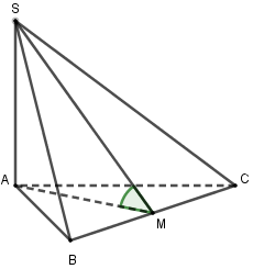 Ta có: \(\left\{ \begin{array}{l}\left( {SBC} \right) \cap \left( {ABC} \right) = BC\\AM \bot BC\\SM \bot BC\end{array} \right.\) nên góc giữa hai mặt phẳng \(\left( {SBC} \right)\) và \(\left( {ABC} \right)\) là \(\angle \left( {SM,AM} \right)\) hay \(\angle SMA = {30^0}\).
