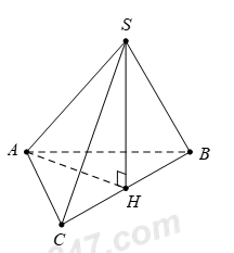 Mà \(SA=SB=SC\)\(\Rightarrow \,\,SH\) vuông góc với mặt phẳng \(\left( ABC \right)\)