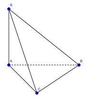 Cho hình chóp S.ABC có \(SA \bot (ABC)\), \(\Delta ABC\) vuông tại A. Góc giữa 2 đường thẳng AB và SC bằng: