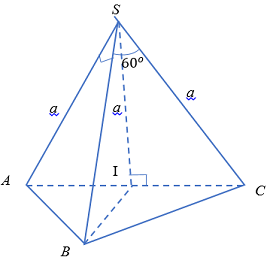 \( + )\) Vì \(S.ABC\) là hình chóp đều \(\left( {SA = SB = SC = a} \right)\)\( \Rightarrow SI \bot \left( {ABC} \right) \Rightarrow SI \bot IB.\)
