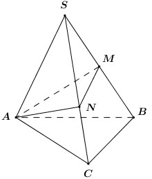 Do đó \(\dfrac{{{V_{S.AMN}}}}{{{V_{S.ABC}}}} = \dfrac{{SA}}{{SA}}.\dfrac{{SM}}{{SB}}.\dfrac{{SN}}{{SC}} = 1.\dfrac{1}{2}.\dfrac{2}{3} = \dfrac{1}{3}\)