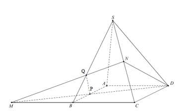 \(\dfrac{{BM}}{{BC}}.\dfrac{{SC}}{{SN}}.\dfrac{{QN}}{{QM}} = 1 \Leftrightarrow 1.2.\dfrac{{QN}}{{QM}} = 1 \Leftrightarrow \dfrac{{QN}}{{QM}} = \dfrac{1}{2}\) \( \Rightarrow \dfrac{{MQ}}{{MN}} = \dfrac{2}{3}\)