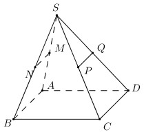 \(PQ\) là đường trung bình của \(\Delta SCD \Rightarrow PQ//CD\).