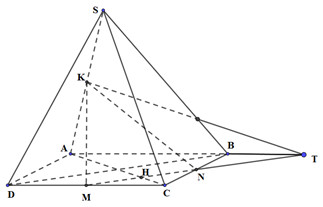 Cho hình chóp S.ABCD có đáy ABCD là hình bình hành. M, N, K lần lượt là trung điểm của các cạnh DC, BC, SA. Gọi H là giao điểm của AC và MN. Giao tuyến của (MNK) với (SAB) là đường thẳng KT, với T được xác định theo 4 phương án liệt kê dưới đây. Hãy chọn câu đúng