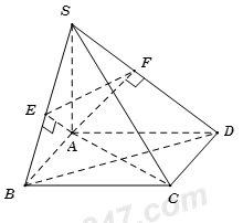 Cho hình chóp S.ABCD có đáy ABCD là hình chữ nhật, cạnh bên SA vuông góc với mặt phẳng đáy. Gọi AE, AF lần lượt là đường cao của tam giác SAB và tam giác SAD. Khẳng định nào dưới đây là đúng ?