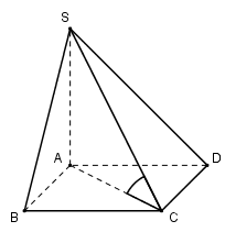 \( \Rightarrow \widehat {\left( {SC;\left( {ABCD} \right)} \right)} = \widehat {\left( {SC;AC} \right)} = \widehat {SCA}\).