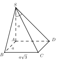 Cho hình chóp \(S.ABCD\) có đáy \(ABCD\) là hình chữ nhật, \(SA\) vuông góc với đáy, \(AB = a,\,\,AD = a\sqrt 3 ,\,\,SA = a\). Số đo góc giữa \(SD\) và mặt phẳng \(\left( {SAB} \right)\) bằng:
