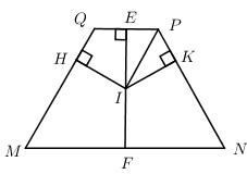 Giả sử MNPQ ngoại tiếp được đường tròn tâm I, gọi E và F lần lượt là trung điểm của PQ và MN.