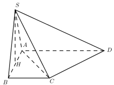 \(\Rightarrow SH\bot AB\Rightarrow SH\bot \left( ABCD \right)\)