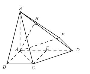 Trong \(\left( {SAF} \right)\) kẻ \(AH \bot SF\,\,\left( {H \in SF} \right) \Rightarrow FD \bot AH\).