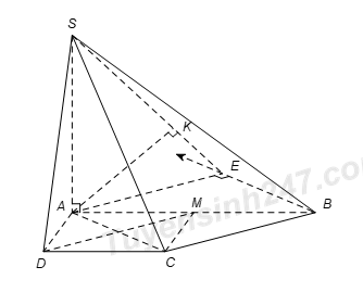 Khi đó \(d\left( A,\left( SBE \right) \right)=AK=\frac{SA.AE}{\sqrt{S{{A}^{2}}+A{{E}^{2}}}}\).