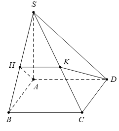 Do đó mặt cắt là hình thang ADKH mà \(AD\bot mp\,\,\left( SAB \right)\)\(\Rightarrow \,AD\bot AH.\)