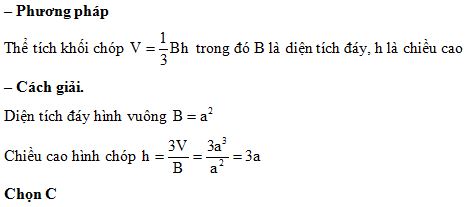 Cho hình chóp S.ABCD có đáy ABCD là hình vuông cạnh a, thể tích khối chóp là \(a^3\) . Tính chiều cao h của hình chóp