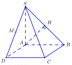 \(\left\{ \begin{array}{l}BC \bot AB\\BC \bot SA\,\,\left( {SA \bot \left( {ABCD} \right)} \right)\end{array} \right. \Rightarrow BC \bot \left( {SAB} \right) \Rightarrow BC \bot AH\).