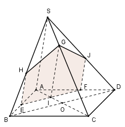 Tương tự như vậy ta xác định được \(\begin{array}{l}\left( P \right) \cap \left( {SAB} \right) = EH\parallel SA\,\,\left( {H \in SB} \right)\\\left( P \right) \cap \left( {SAD} \right) = FJ\parallel SA\,\,\left( {J \in SD} \right)\end{array}\)