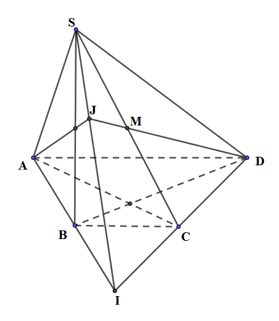 Cho hình chóp S.ABCD có đáy là hình thang ABCD \(\left( {AD//BC,\,\,AD > BC} \right)\). Gọi I là giao điểm của AB và DC; M là trung điểm của SC và DM cắt mặt phẳng (SAB) tại J. Khẳng định nào sau đây sai?
