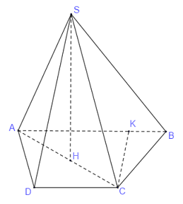 Gọi \(H\) là trung điểm \(AC\). Theo giả thiết thì \(SH \bot \left( {ABCD} \right)\)