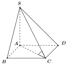 \( \Rightarrow \angle \left( {SC;\left( {ABCD} \right)} \right) = \angle \left( {SC;AC} \right) = \angle SCA\).