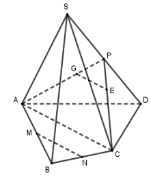 Gọi \(P\) là trung điểm của \(SD\) thì \(AG = \dfrac{2}{3}AP,CE = \dfrac{2}{3}CP\)\( \Rightarrow GE//AC\).