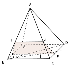 HJ // BC \(\Rightarrow \frac{HJ}{BC}=\frac{SH}{SB}=\frac{AE}{AB}=\frac{2}{3}\Rightarrow HJ=\frac{2}{3}BC=\frac{2}{3}a\)