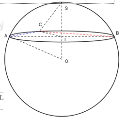 Ta cần tính \(R=SO.\) Ta có \(SI=1\,\left( cm \right),\,AB=\sqrt{6}\,\left( cm \right).\)