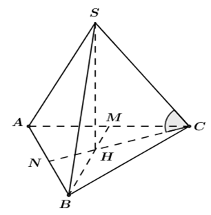Suy ra \(CH\) là hình chiếu của \(SC\) trên \(\left( ABC \right)\) \(\Rightarrow \,\,\widehat{\left( SC;\left( ABC \right) \right)}=\widehat{\left( SC;CH \right)}=\widehat{SCH}.\)