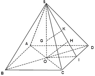 O=AC ∩ BD. Gọi I là trung điểm CD. Nối OI, SI => OI⊥CD; SI⊥CD
