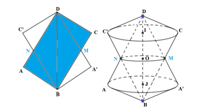 Thể tích khối nón có đỉnh B và đáy là hình tròn tâm I bán kính IC bằng thể tích khối nón có đỉnh D và đáy là hình tròn tâm J bán kính JA bằng: