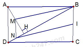 Cho hình chữ nhật ABCD. Gọi H là chân đường vuông góc kẻ từ A đến BD. Gọi M và N theo thứ tự là trung điểm của các đoạn AH và DH.