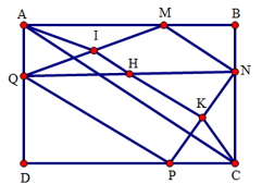 Mặt khác nếu xét các điểm A, I, H, K, C ta có: \(AI{\rm{ }} + {\rm{ }}IH{\rm{ }} + {\rm{ }}HK{\rm{ }} + {\rm{ }}KC{\rm{ }} \ge AC\)Do đó \({P_{MNPQ}} \ge 2AC\) (không đổi)