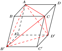 Ta có: \({V_{ABCD.A'B'C'D'}} = {V_{ACB'D'}} + {V_{B'.ABC}} + {V_{D'.ACD}} + {V_{A.A'B'D'}} + {V_{C.B'C'D'}}\).