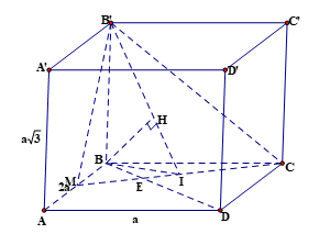 Kẻ \(BH \bot B'I \Rightarrow BH \bot \left( {B'MC} \right) \Rightarrow d\left( {B,\left( {B'MC} \right)} \right) = BH.\)
