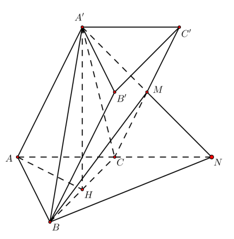 Gọi H là trung điểm của BC \( \Rightarrow A'H \bot \left( {ABC} \right)\)