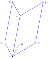 \( \Rightarrow {V_{ABC.A'B'C'}} = {S_{ABC}}.A'H = \frac{{{a^2}\sqrt 3 }}{4}.\frac{{a\sqrt 6 }}{2} = \frac{{{a^3}\sqrt 2 }}{8} = \frac{{{a^3}}}{{4\sqrt 2 }}.\)
