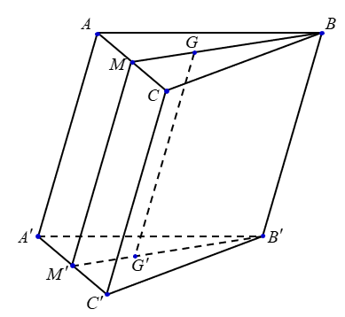 + Do ABC.A’B’C’ là hình lăng trụ. Suy ra qua phép chiếu song song đường thẳng AA’ biến B thành B’, biến M thành M’