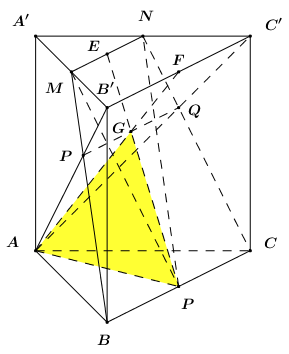 Trong \(\left( {AB'C'} \right)\) gọi \(G = PQ \cap AF\).