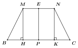 Lại có \(E,\,\,P\) là trung điểm của hai đáy nên \(EP \bot MN,\,\,EP \bot BC\).