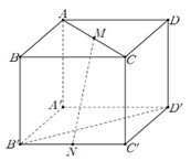 Cho hình lập phương ABCD.A’B’C’D’ cạnh a. Gọi M, N lần lượt là trung điểm của ACB’C’, \(\alpha \) là góc giữa đường thẳng MN và mặt phẳng (A’B’C’D’). Giá trị \(\sin \alpha \) bằng