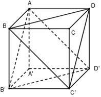 \(\begin{align}&{{V}_{C'.AB'D'}}={{V}_{A.B'C'D'}}=\frac{1}{3}AA'.{{S}_{B'C'D'}}=\frac{1}{3}AA'.\frac{1}{2}B'C'.C'D' \\&\,\,\,\,\,\,\,\,\,\,\,\,\,\,\,\,\,\,\,=\frac{1}{6}{{V}_{ABCD.A'B'C'D'}}=\frac{1}{6}{{.2}^{3}}=\frac{4}{3} \\ \end{align}\)