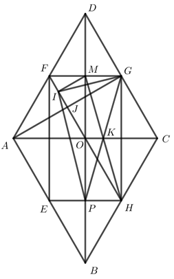 \( \Rightarrow \) FH là đường trung bình của hình thoi ABCD \( \Rightarrow \)FH // AB // CD và \(FH = AB = CD\)