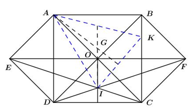 d) Gọi \(M\) là giao điểm của \(IO\) với \(AB,N\) là giao điểm của \(IM\) cới \(AK\), ta có: