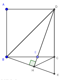 Cho hình vuông ABCD, điểm E thuộc cạnh BC. Qua B kẻ đường thẳng vuông góc vớ DE, đường thẳng này cắt các đường thẳng DE và DC lần lượt tại H và K.
