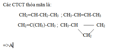 Cho hợp chất X có công thức phân tử là C4H8. Số đồng phân cấu tạo làm mất màu dung dịch Brom ứng với X là