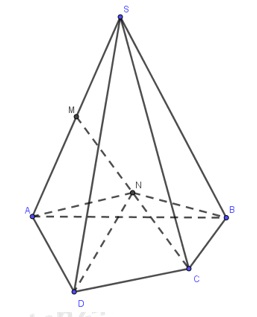 \(\begin{array}{l}\frac{{{V_{M.ABCD}}}}{{{V_{S.ABCD}}}} = \frac{{d(M,(ABCD))}}{{d(S,(ABCD))}} = \frac{{MA}}{{SA}} = \frac{1}{2} \Rightarrow {V_{M.ABCD}} = \frac{1}{2}{V_{S.ABCD}} = \frac{1}{2}V\\ \Rightarrow {V_{N.ABCD}} = \frac{1}{2}.\frac{1}{2}.V = \frac{1}{4}V\end{array}\)