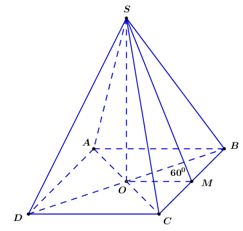 \( \Rightarrow \angle \left( {\left( {SBC} \right);\;\left( {ABCD} \right)} \right) = \angle \left( {SM;\;OM} \right) = \angle SMO = {60^0}.\)