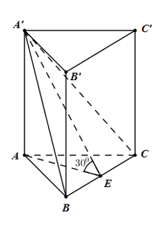 \( \Rightarrow {S_{\Delta ABC}} = \frac{{{{\left( {4a} \right)}^2}\sqrt 3 }}{4} = 4\sqrt 3 {a^2}\) Xét tam giác vuông A’AE có \(AA' = AE.\tan {30^0} = \frac{{4a\sqrt 3 }}{2}.\frac{{\sqrt 3 }}{3} = 2a\)