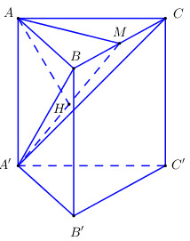 Trong \(\left( AA'M \right)\) kẻ \(AH\bot A'M\) ta có: