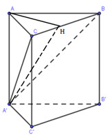 Diện tích tam giác A’BC là \({{S}_{A'BC}}=\dfrac{1}{2}A'H.BC\Rightarrow A'H=\dfrac{2{{S}_{A'BC}}}{BC}=\dfrac{4{{a}^{2}}}{2a}=2a.\)